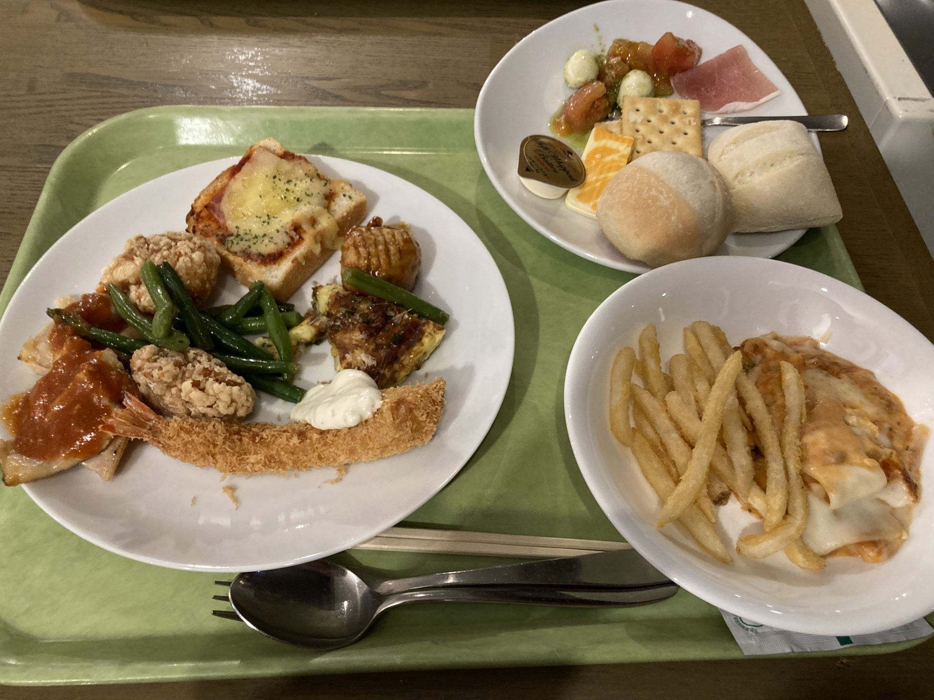 話したいのは晩御飯のことです。宿ではなく、スキー場レストランでのビュッフェでした🍽️(コーチの梁川さん曰くイレギュラーらしい)