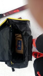 インカレでは、本板を持った一部校の選手たちが(↑画像左)こんな感じでスタートエリアまで悠々と滑り降りており、格のちがいを感じました。