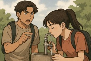 全に電話して、ゆうた先輩と全が山頂に戻ってきました。私を探して階段の下まで行ってくれていたらしく二人とも怒っていました。ゆうた先輩に心配させるようなこと言うなよって怒られたのですが、叱られている最中私が水を飲んでいたのでみんなに怒られました。
